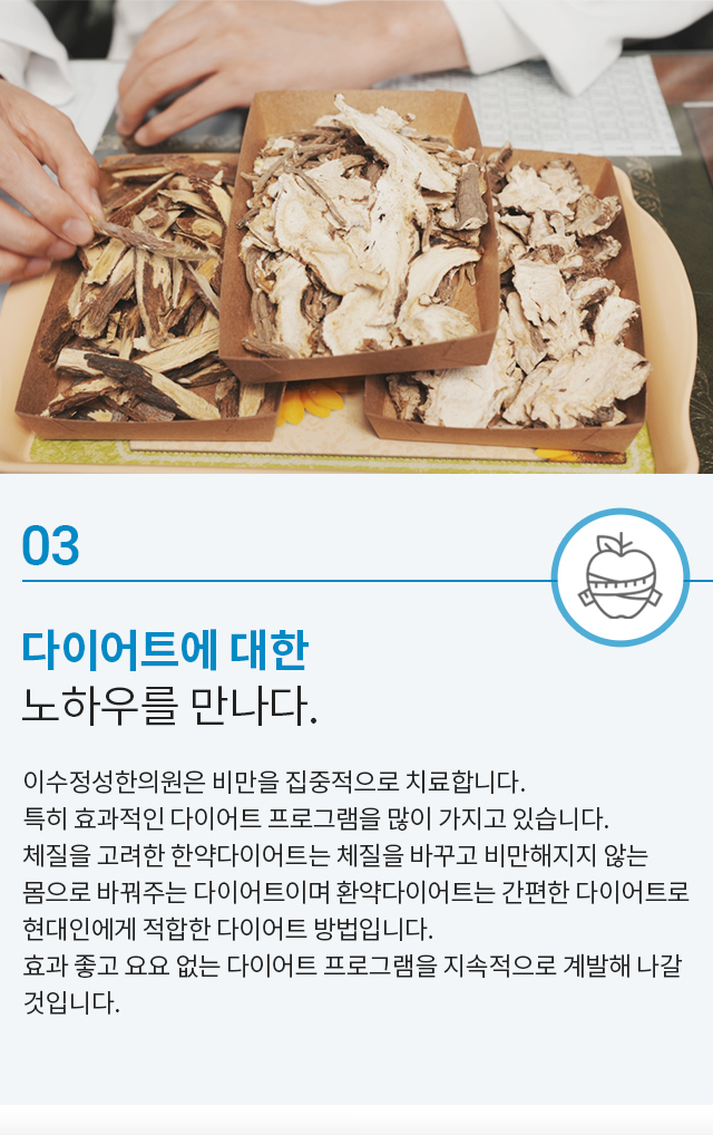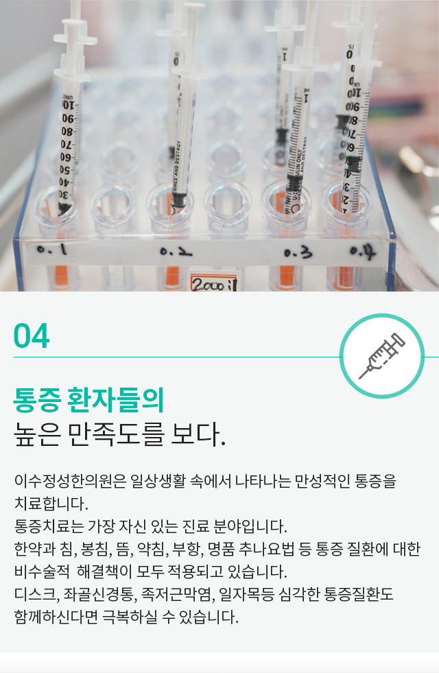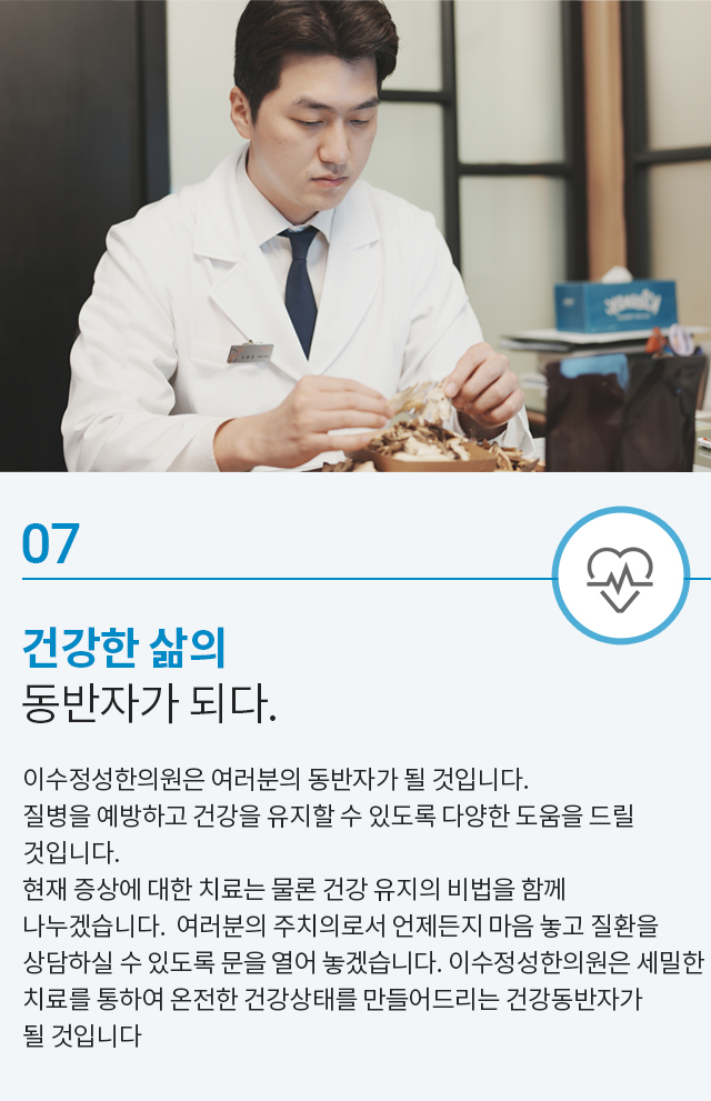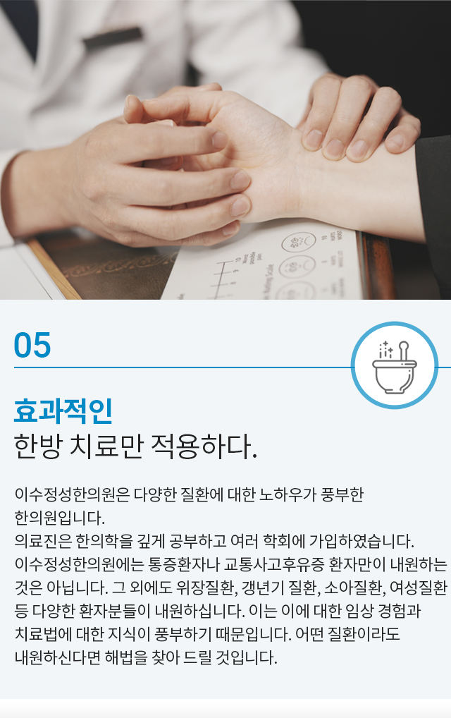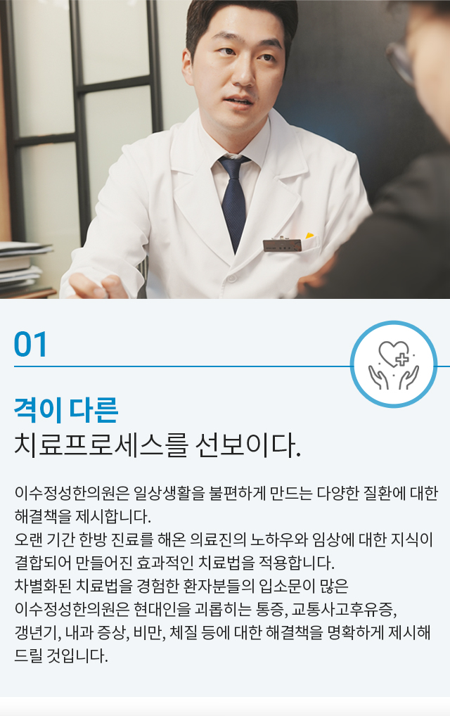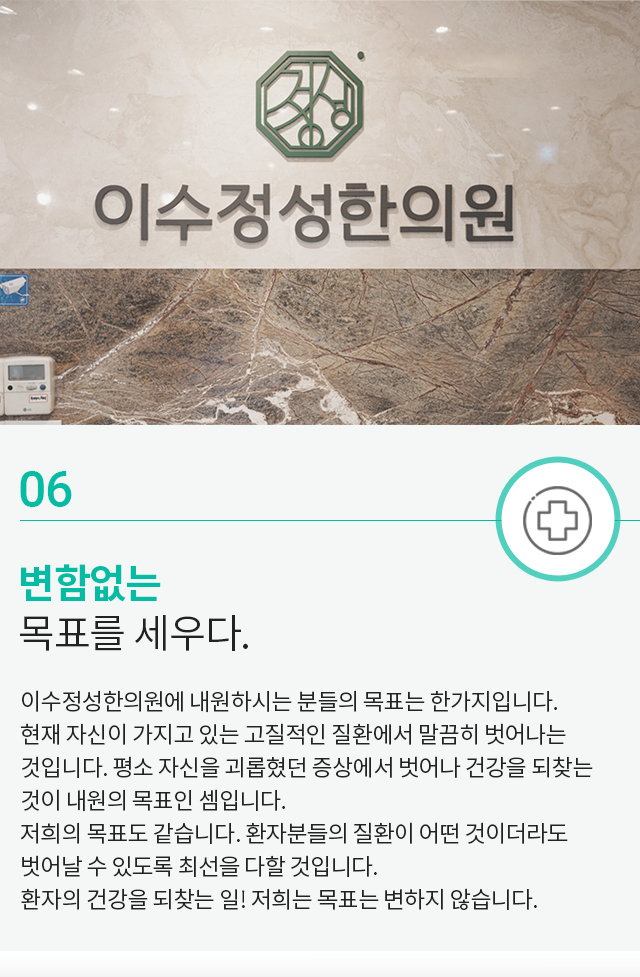 결과 좋은 치료는 효과에 대한 자신감으로부터 시작되다 환자를 위해 항상 노력하는 이수정성한의원입니다.