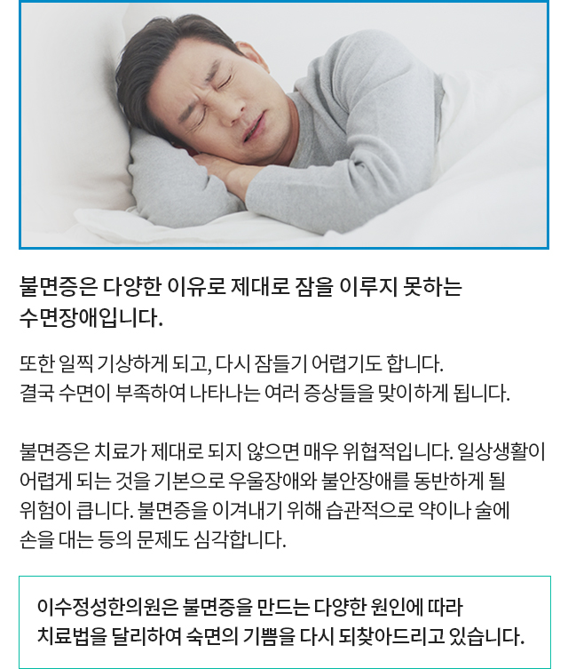 삶의 질을 저하시키는 불면의고통원인에 따른 맞춤치료법으로 불면증을 치료해주는이수정성한의원을 만나다.