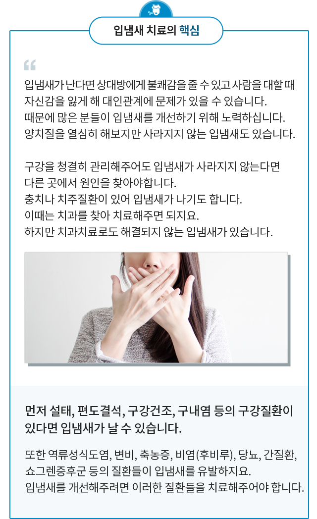 없어지지 않는 심한 입냄새! 속에서 올라오는 역겨운 냄새구취가 생기는 원인을 파악하고 맞춤 치료법을 제시하는이수정성한의원을 만나다.