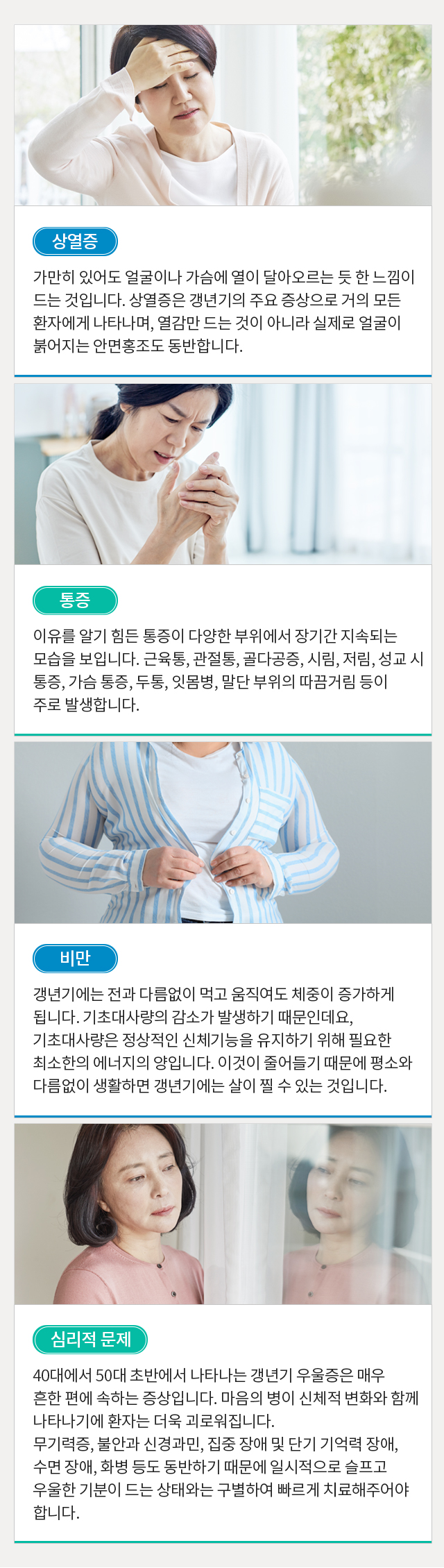 여성이라면 누구나 한 번쯤 찾아오는 갱년기!하지만 심하게 나타난다면갱년기에 대한 올바른 진단과 증상에 따른 대처법이 필요